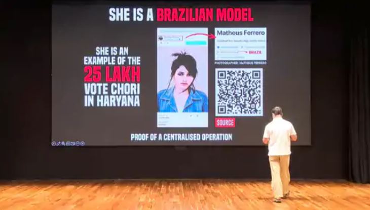 राहुल गांधी की प्रेस कॉन्फ्रेंस में दिखाई गई ब्राजीलियन मॉडल...