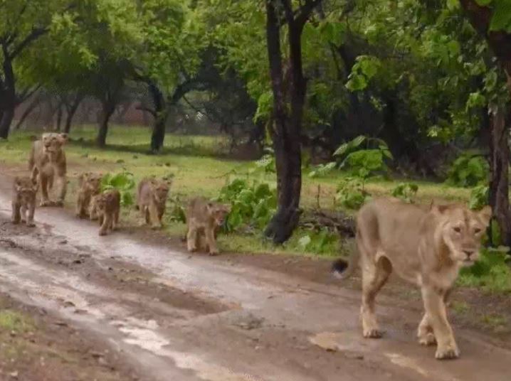 गिर-सोमनाथ में आठ शेरों के झुंड से मची दहशत, रातभर गांव में ...